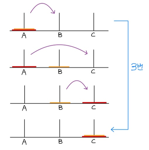 3. 큰 원반이 작은 원반 위에 있을 수 없다.